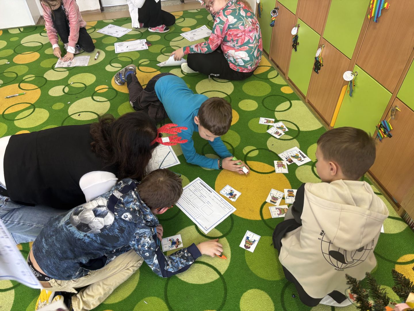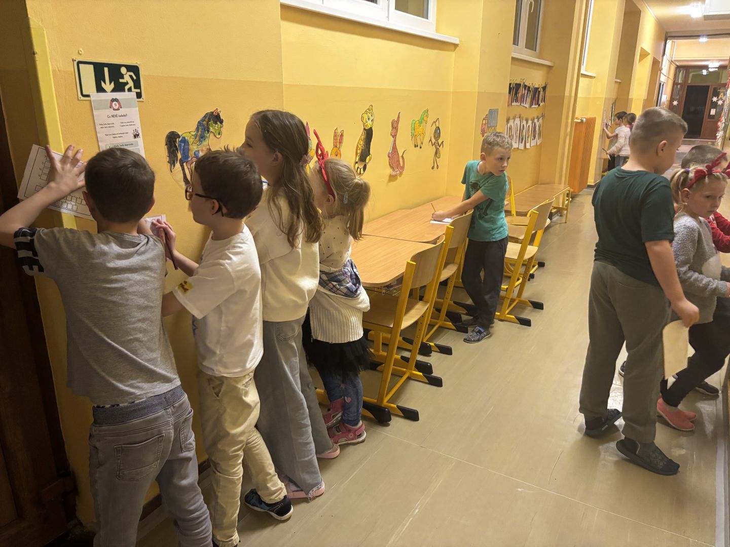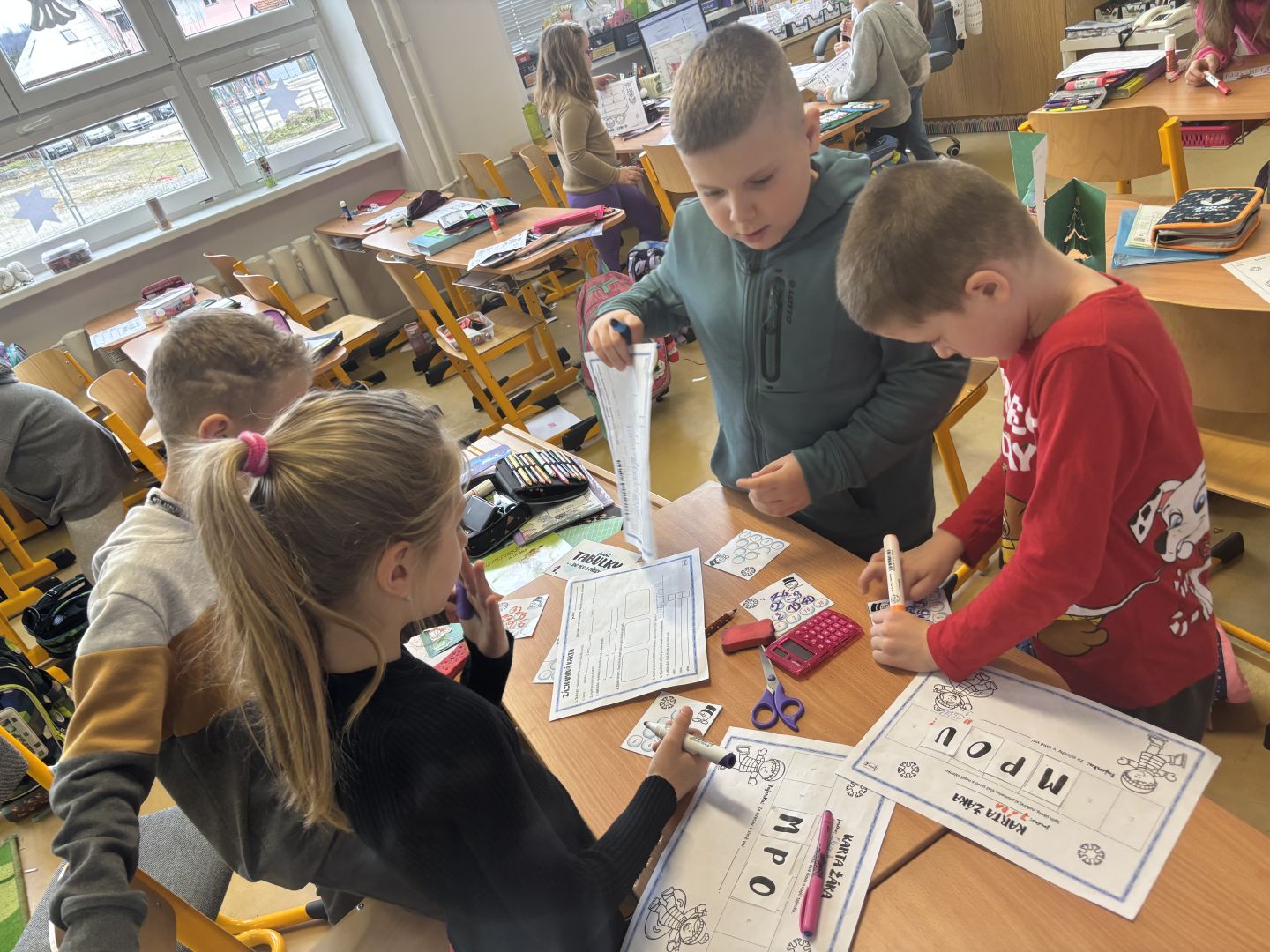 V posledním předvánočním týdnu do školy přijelo mobilní planetárium, ve kterém jsme viděli tři kratší výukové programy. Ve středu jsme měli „volný vánoční den“ – hráli jsme vánoční kufr, zimní únikovku, vyráběli jsme přáníčka a vyškrabávané obrázky a měli hodinu angličtiny o Vánocích. Odpoledne jsme měli sraz ve třídě a čekala nás už tradiční vánoční přespávačka ve škole. Děti jsou již po loňském kurzu přežití v přírodě, takže vybalení karimatek a spacáků byla pro ně brnkačka. Zahráli jsme si pár her, zatančili na improvizované diskotéce, mrkli na vánoční pohádku, zahráli si vánoční šipkovanou a šlo se pomalu spát (no, jak kdo). Ráno po probuzení jsme se nasnídali ze zásob od rodičů, poklidili třídu a tradá do solné jeskyně. Po cestě zpět do školy jsme se na náměstí povozili na kolotoči. V pátek nás už čekala jen besídka, vánoční hra „Riskuj“ a přehlídka talentů naší třídy v „Talentmánii“. A pak už HURÁ – vánoční prázdniny.