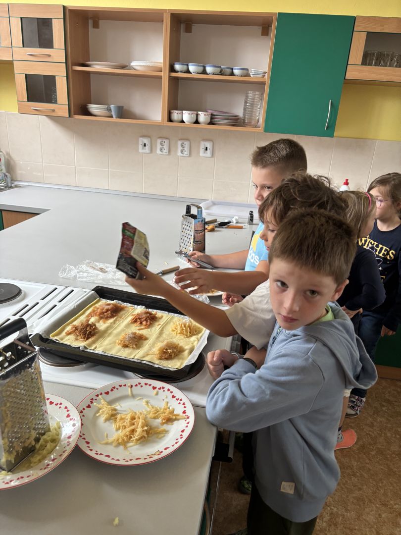 Stejně jako loni jsme již o pracovkách stihli navštívit naši školní kuchyňku. Loni jsme si nasadili laťku dost vysoko, to jsme se dopracovali až k řízkům. Naše první druháčkovské vaření jsme zahájili pečením mini jablečných štrůdlíků. Děti také velmi bavila výroba Tetky Abecedky – ta se nám velmi hodí v hodinách ČJ, protože jsme již začali s novým učivem a to je právě znalost abecedy.