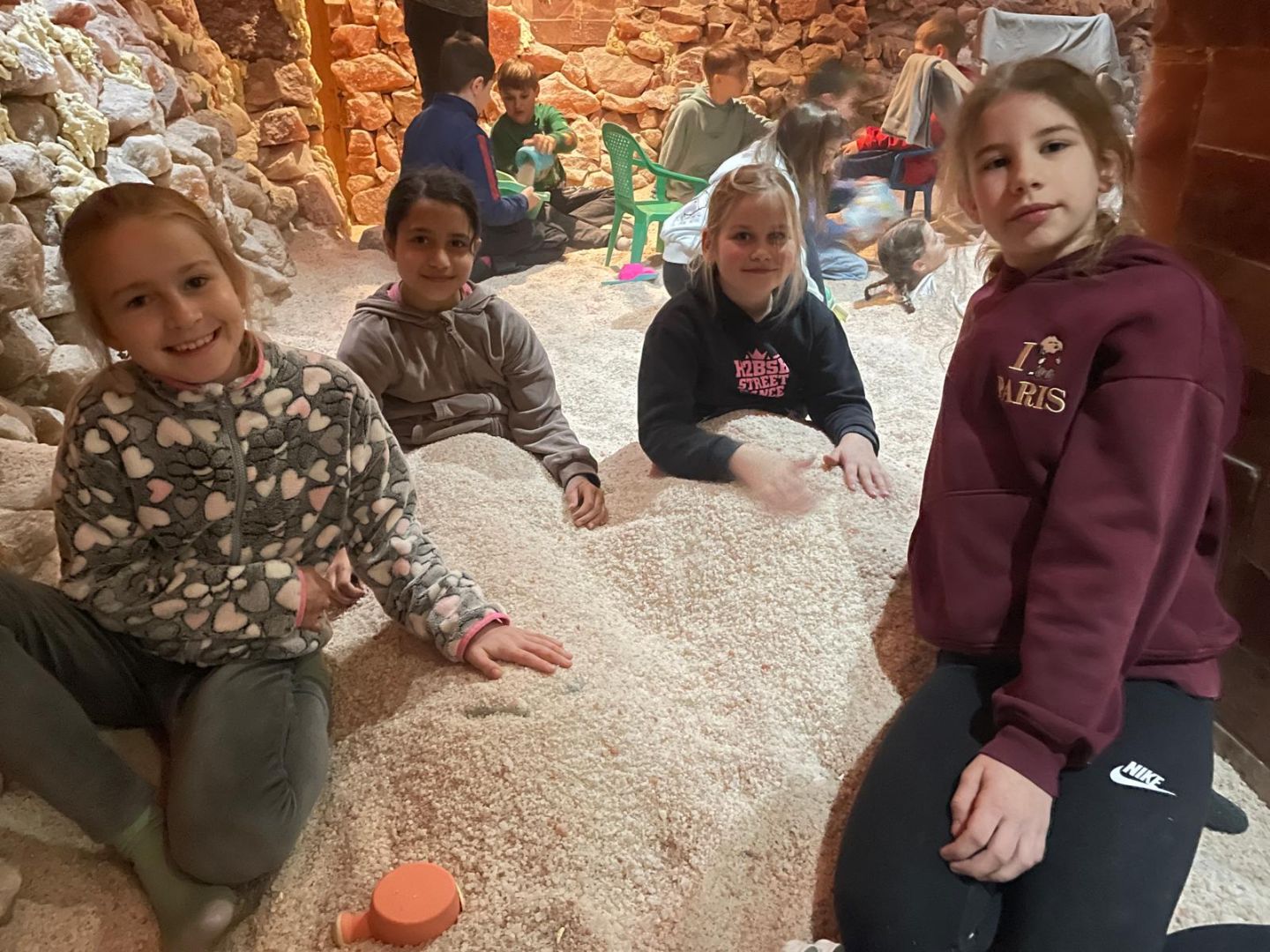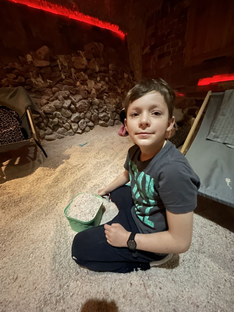 Dne 26.3. jsme si odskočili z vyučování do Rožnovského pivovaru, kde se solná jeskyně nachází v pohádkových lázních. Slouží k regeneraci organismu. Je jedna z největších ve Zlínském kraji. Na její výstavbu bylo použito téměř 20 tun mořské soli z Mrtvého, Černého a Středozemního moře, soli z Himalájí a jódové soli z podzemních solných dolů a Pákistánských solných kamenů, její stěny zdobí i krystaly a polodrahokamy. Děti ale nejvíce zajímal domeček, skluzavka a hračky. S chutí se zahrabávaly do soli, okolo stojících lehátek k odpočinku si ani nevšimly. Do školy se nám vůbec nechtělo. Snad budeme všichni z našeho relaxačního pobytu v solné jeskyni dlouho zdraví.
