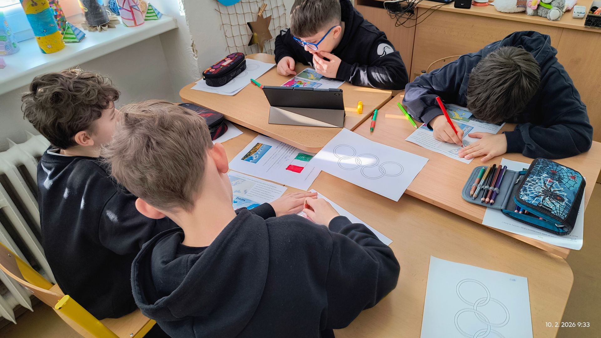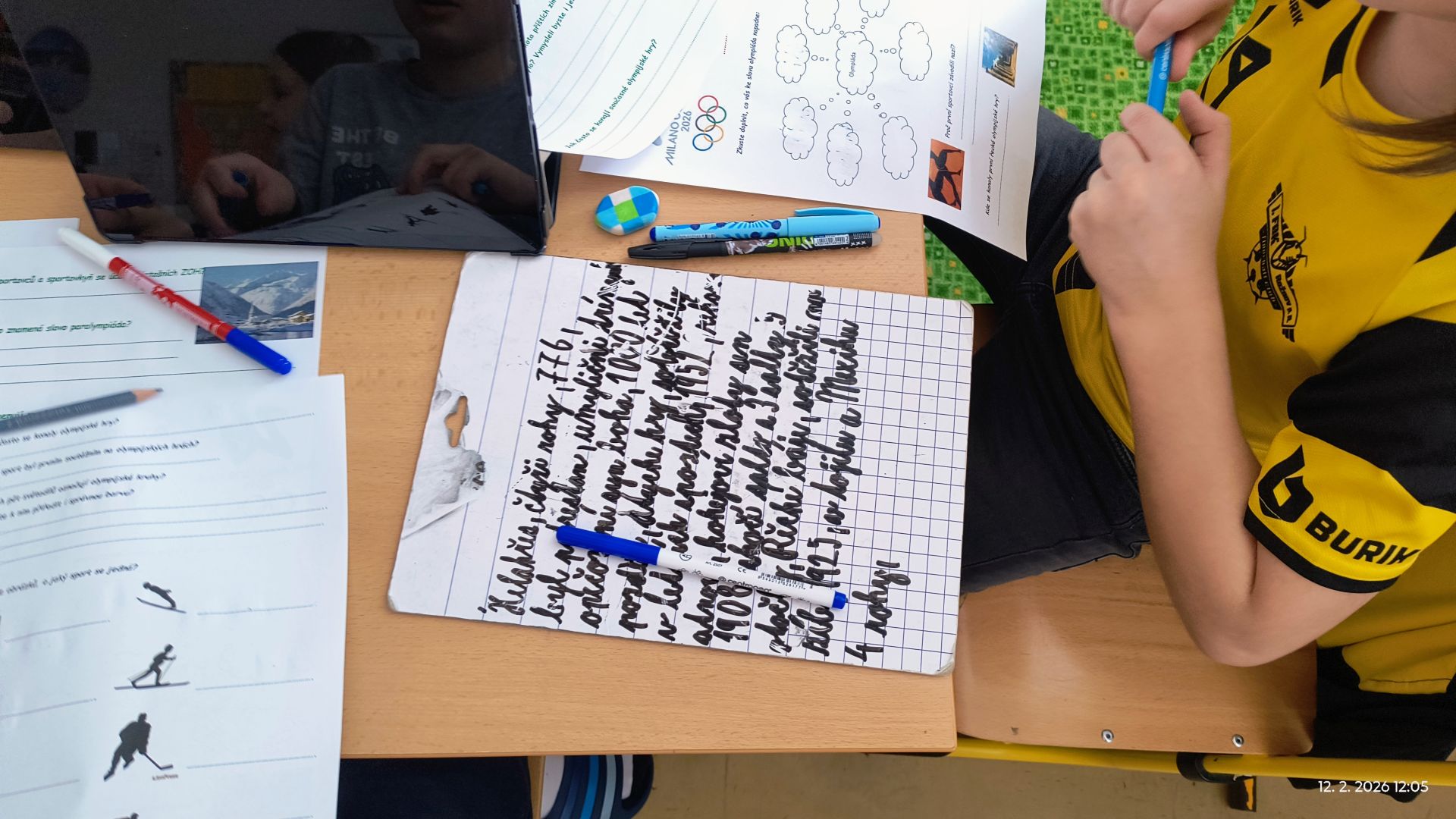O olympijských hrách, o Itálii i našich sportovcích máme teď spoustu informací, Skvělé je především to, že jsme k nim museli nějak dospět sami, neposlouchali jsme žádný výklad; paní učitelka jen občas poradila a především nezapomínala nabít tablety.. Mezitím jsme fandili našim reprezentantům a, samozřejmě, nezapomínáme ani dál držet jim palce, třeba i malíčky. My jsme své výkony v pátek oslavili po italsku - ve třídě se rozvoněla horká výborná pizza.