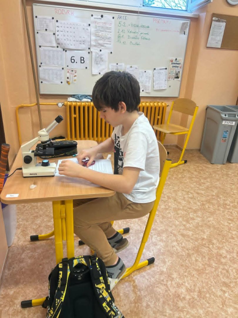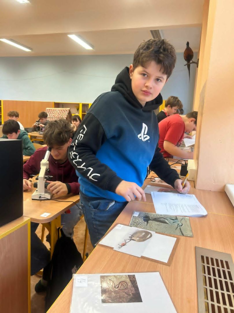 V pondělí 1. prosince proběhlo školní kolo biologické olympiády. Soutěže se zúčastnilo 18 žáků z druhého stupně. Olympiáda se skládala ze 3 částí – z testu, praktického poznávání přírodnin a z laboratorního úkolu.