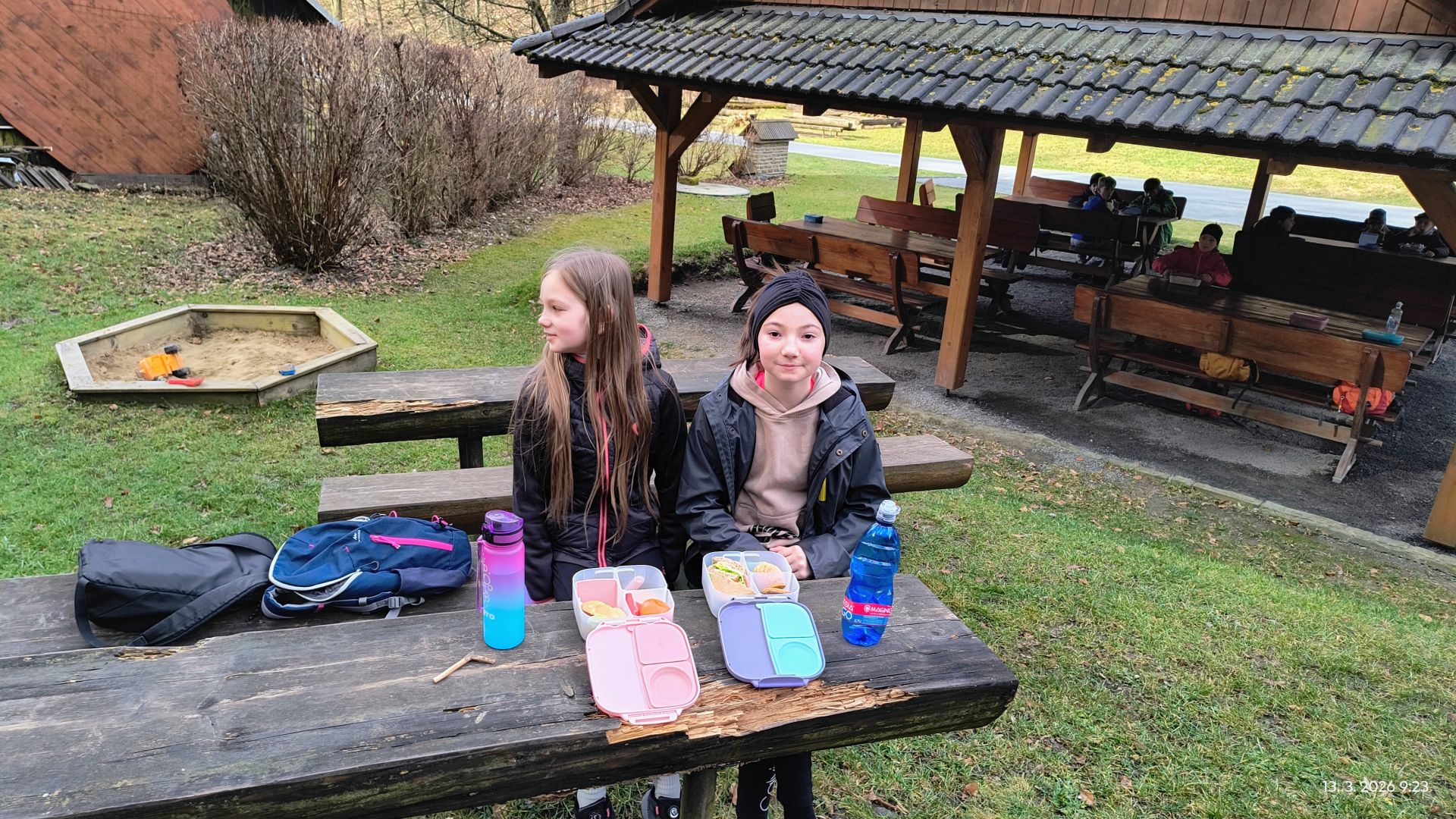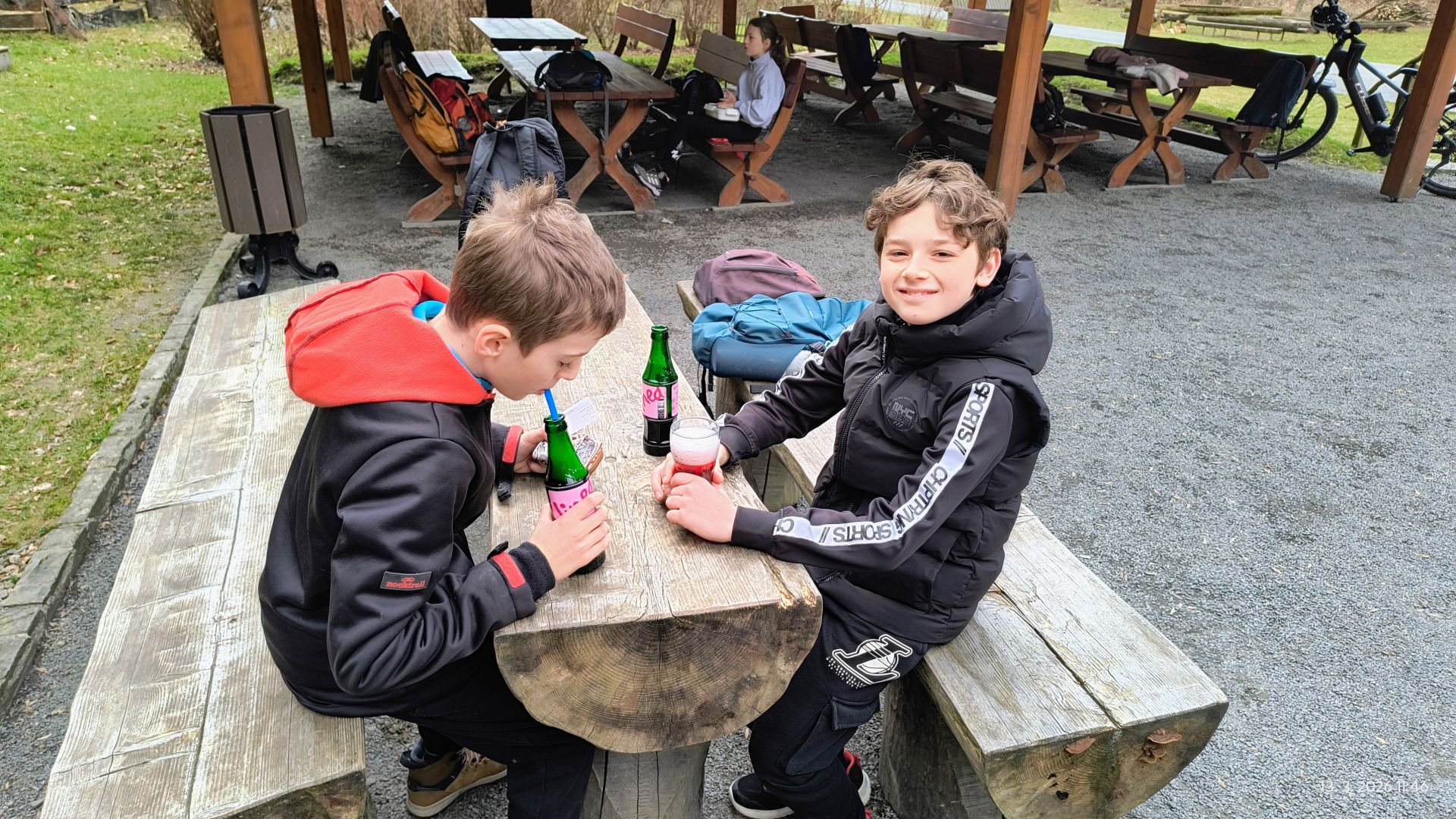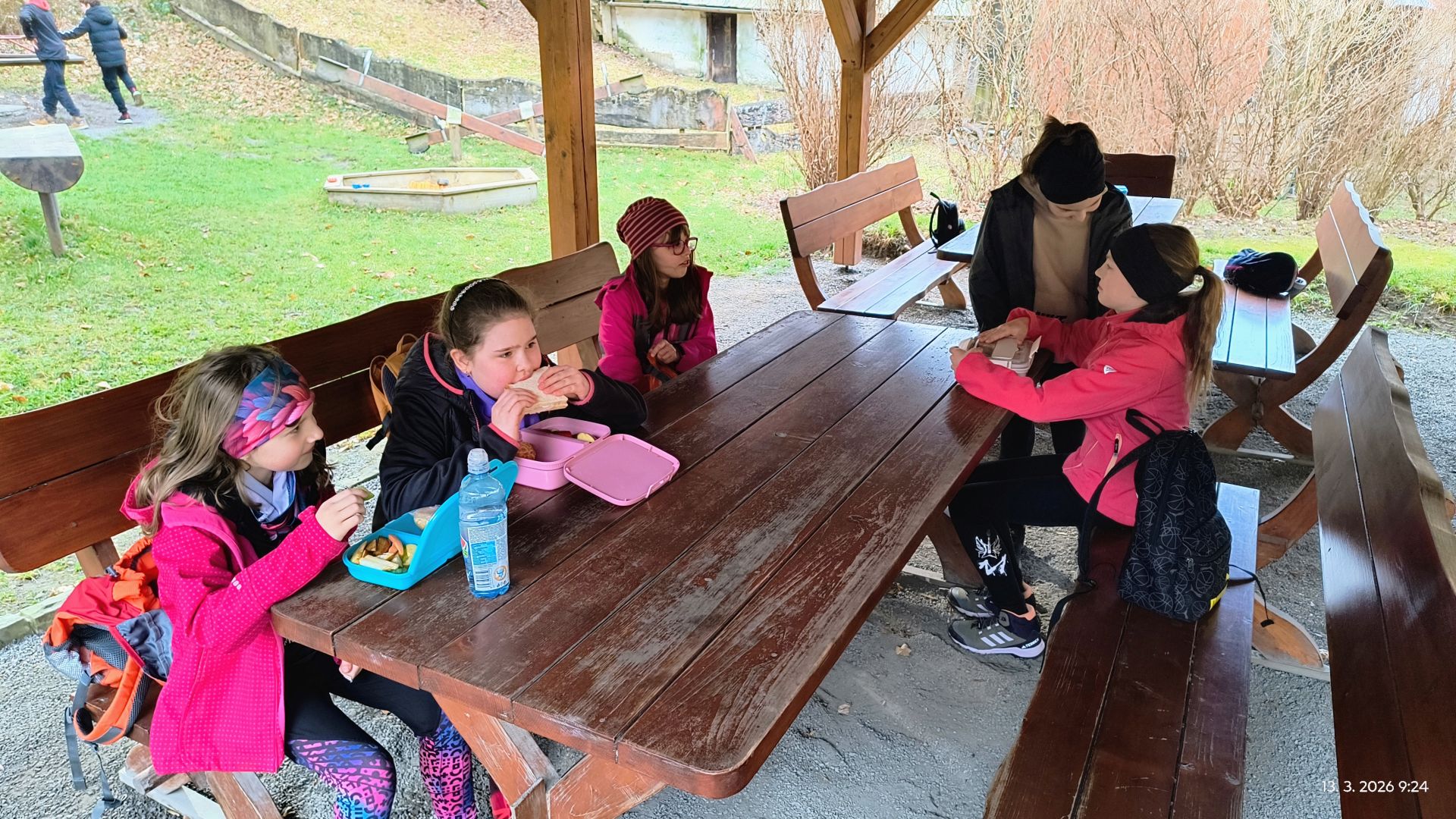 První výškový tábor jsme rozbili na lavičkách Koliby U Hutyrů, posilnili se a nemohli jsme vynechat ani místní malé dětské hřiště; Ostatně, nechejte odpočívat kolotoč nebo houpačky, že.