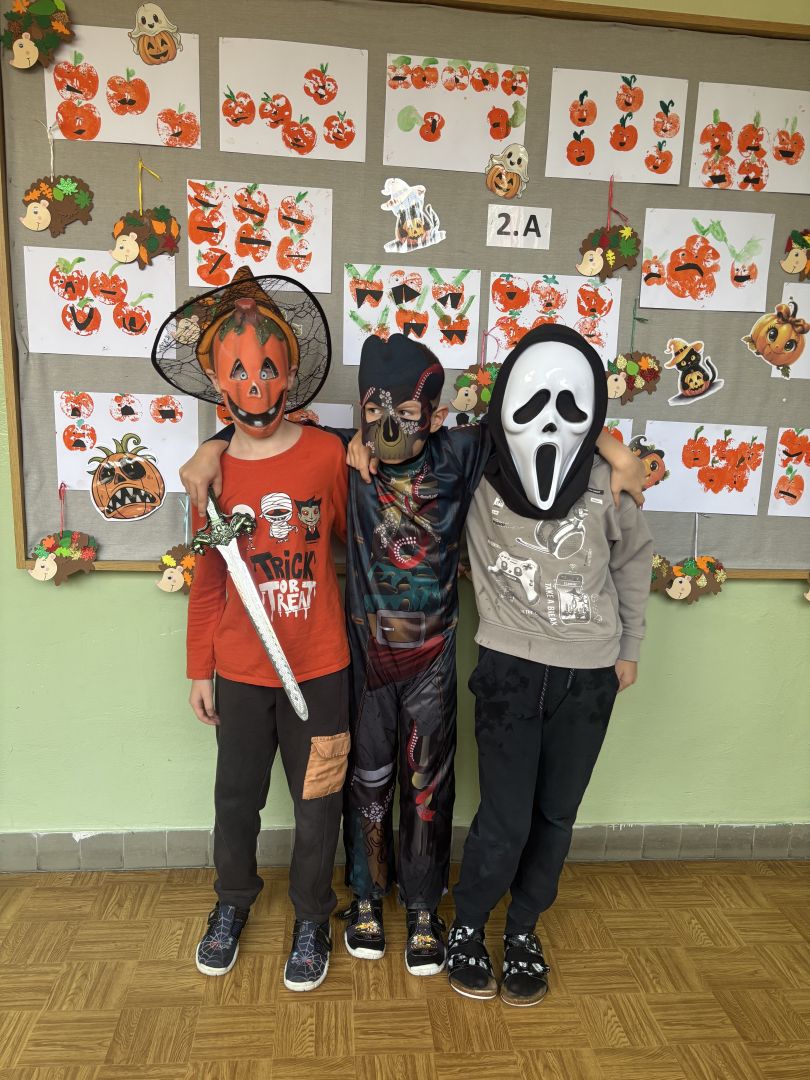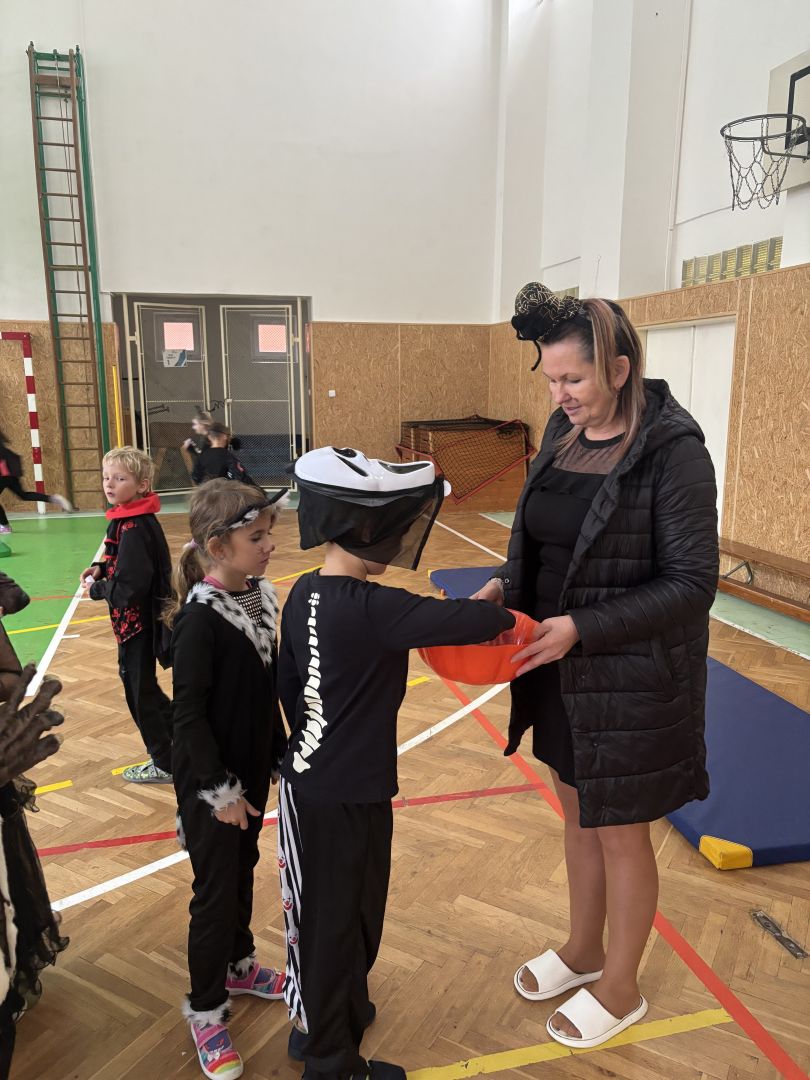 Zjistili jsme informace o slavení svátku Halloween v anglicky mluvících zemích i jeho historii, shlédli jsme vzdělávací video na ČT Edu, naučili jsme se halloweenskou koledu "Trick or treat" a také jsme si zazpívali za doprovodu kláves písničku Halloween. Poté jsme se již přesunuli na karneval v maskách v tělocvičně. Zde se konala přehlídka masek, disko tancovačka a plnění 9 sportovních halloweenských úkolů v týmech.