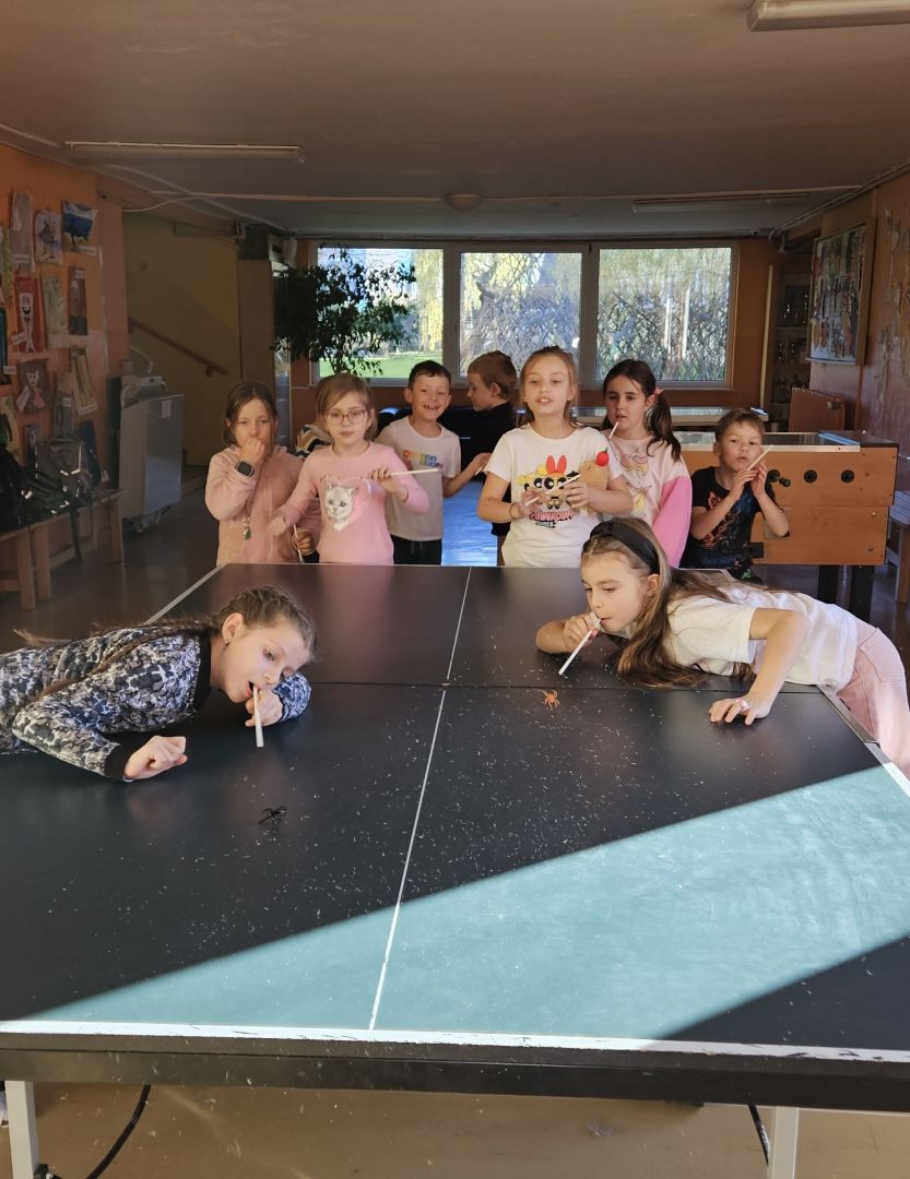 „Foukej, foukej, zaber, už jsi skoro v cíli“, takto povzbuzovaly děti své kamarády z oddělení Sluníček a Draků školní družiny v pátek 7.11. v galerii ZŠ Pod Skalkou. To se zrovna pokoušely papírovou slámkou foukat do plastového pavoučka, kterého tímto způsobem měly co nejrychleji přemístit na druhou stranu pingpongového stolu. Vystřídaly se všichni, někteří dokonce opakovaně, protože je to velmi bavilo.