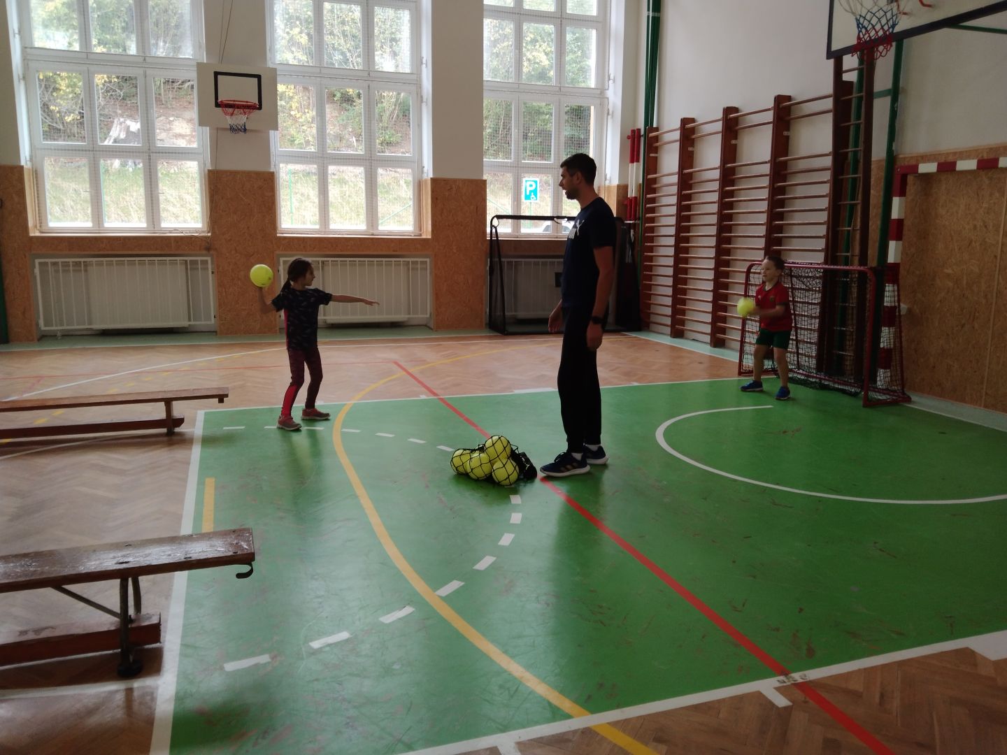Ve čtvrtek 2. října se oddělení Včelek ze školní družiny zúčastnilo sportovní lekce házené, kterou vedl pan lektor Bc. Tomáš Mikulenka ze Střediska volného času Rožnova pod Radhoštěm.