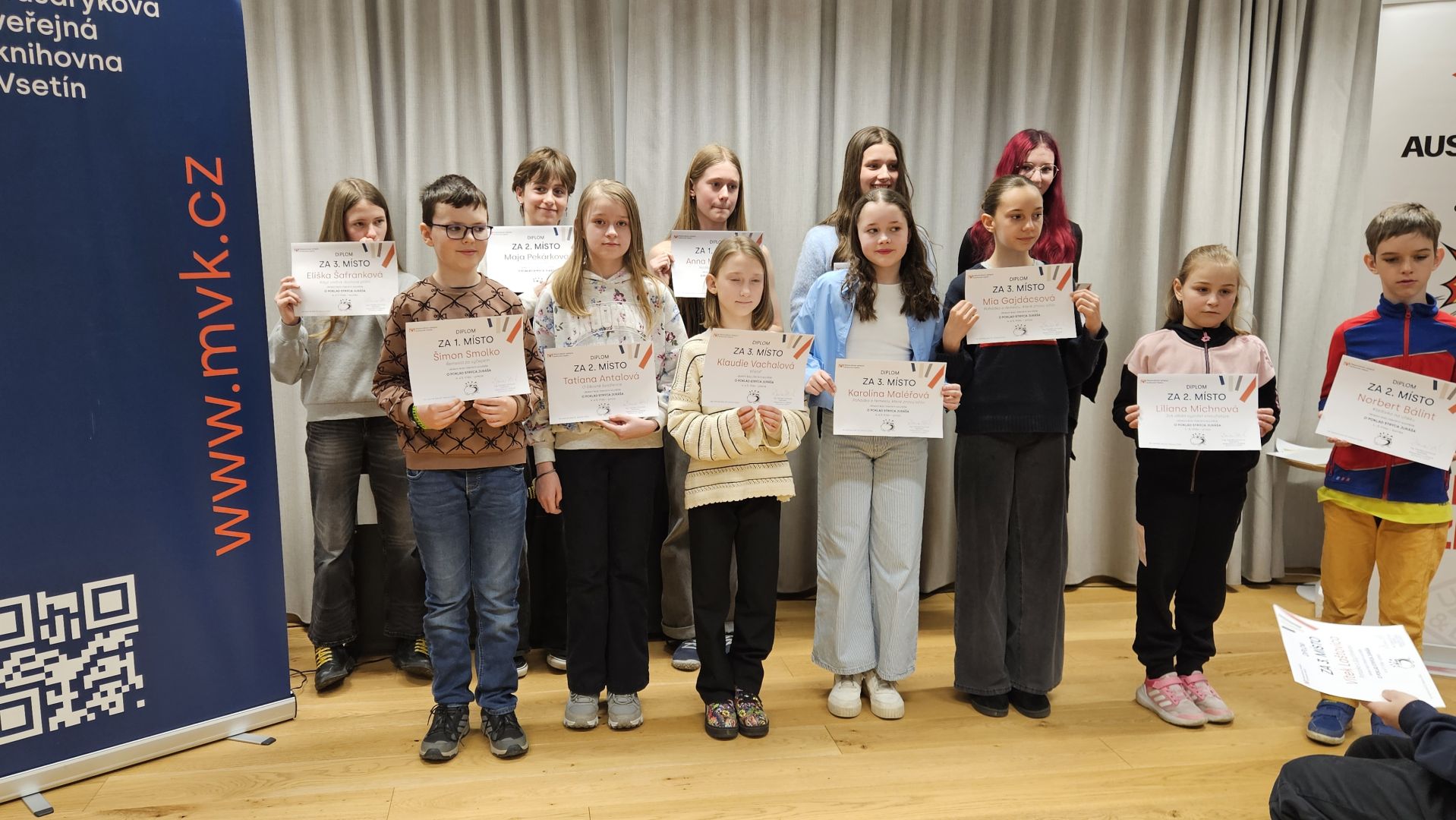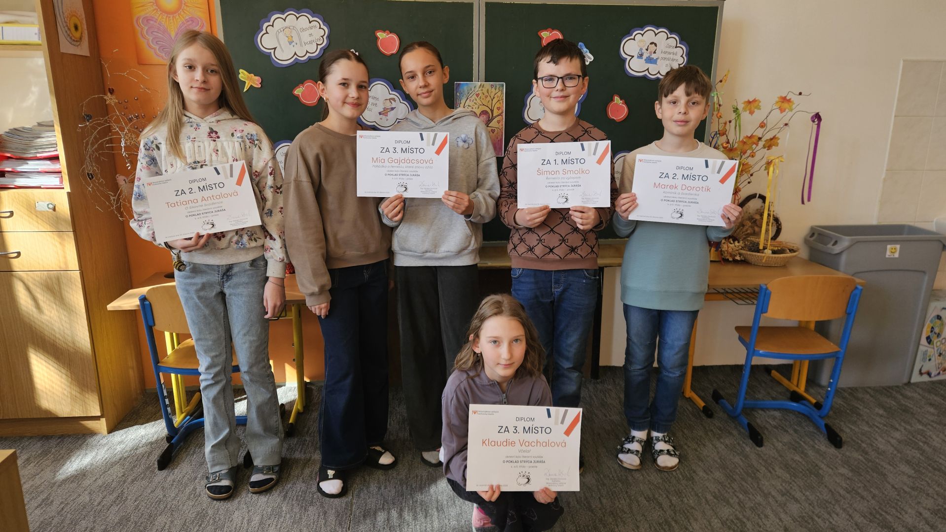 Letošní ročník literární soutěže "O poklad strýca Juráša" je pro naše páťáky velice úspěšný. V minulém týdnu proběhlo ve Vsetínské knihovně vyhlášení okresního kola soutěže. Všichni páťáci, kteří postoupili se svými pracemi do okresního kola, se umístili na předních příčkách. V kategorii próza si třetí místo odnesly Mia Gajdácsová s Karolínou Maléřovou (5.B) a druhou příčku obsadila Taťána Antalová  (5.A). V poezii získala Podskalka celkové vítězství - 3.místo vyhrála Klaudie Vachalová (5.A), 2.místo obsadil Marek Dorotík (5.B) a prvenství se svou básničkou vyhrál Šimon Smolko (5.B). Konkurence byla velká a všem dětem se vyplatila usilovná práce na jejich básničkách i pohádkách. Všichni umístění pokračují dále do krajského kola. Budeme žákům držet pěsti, aby se jim i nadále dařilo tak, jako doposud.