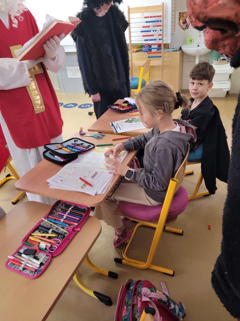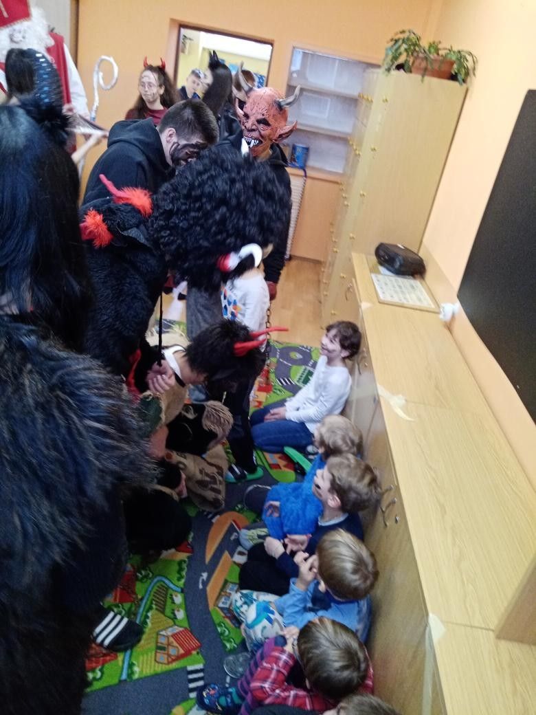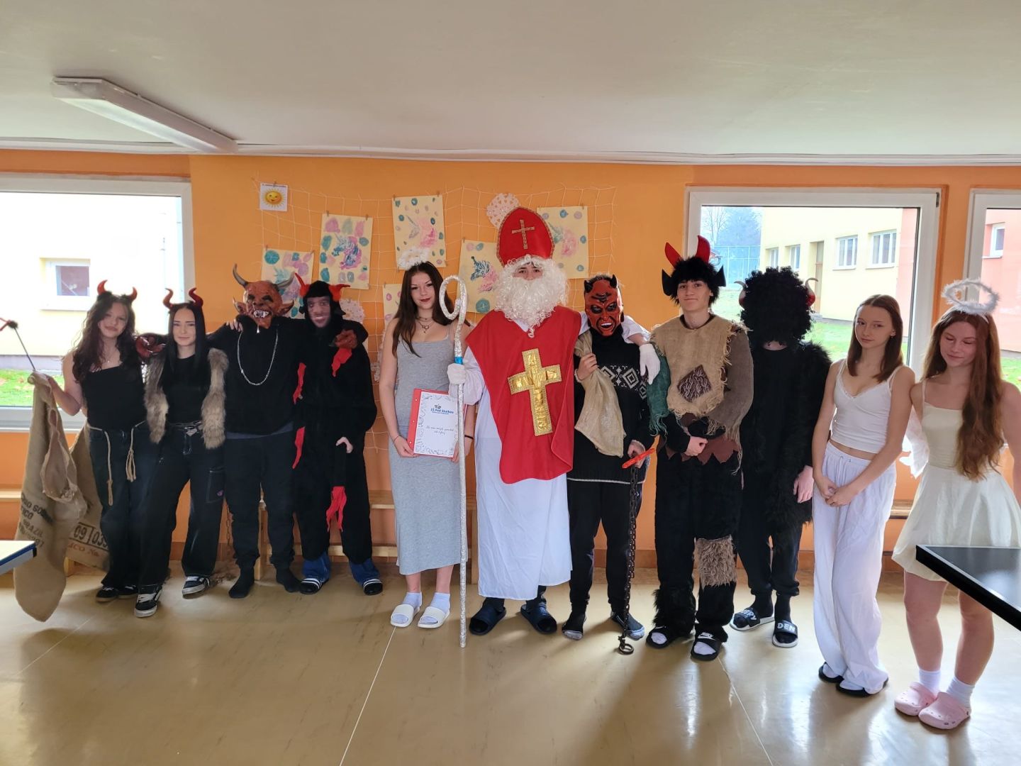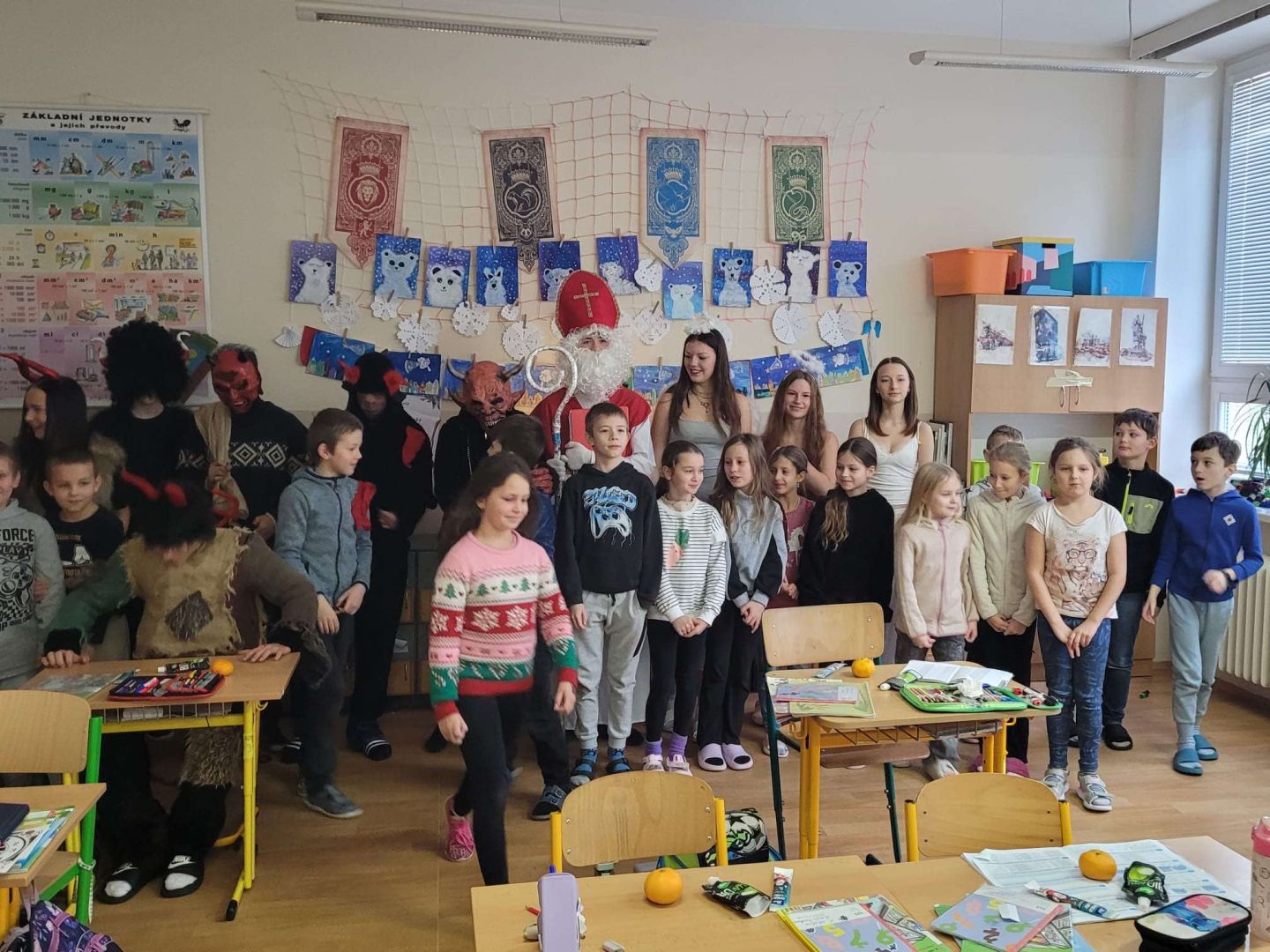 Dnes se na naší škole konala tradiční mikulášská nadílka. Jako každý rok se této role ujali deváťáci, kteří se převlékli za Mikuláše, anděly a čerty a navštívili mladší ročníky. Ve třídách přednesly děti básničky nebo písničky a všichni slíbili, že budou hodní. Mikuláš s anděly rozdali balíčky s drobnými sladkostmi a čerti se postarali o zábavu i o trochu ,,strašení“, samozřejmě jen tak, aby se nikdo příliš nebál. Mikulášská nadílka se tak i letos vydařila.