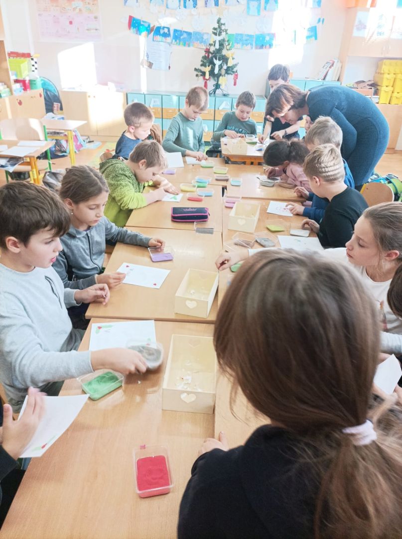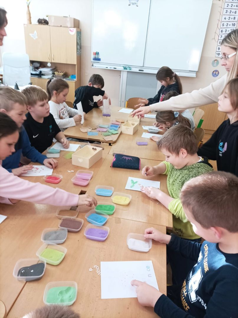 I my jsme dětem ve školní družině chtěli dopřát relaxační chvilku v předvánočním shonu, a proto jsme pro ně s pomocí paní lektorky pískování Šárky Petřekové uspořádali tvořivou dílnu s vánočními motivy technikou pískování. Tato výtvarná technika spočívá v postupném odkrývání samolepicích ploch na obrázku a jejich zasypávání barevným pískem, který se na podklad přichytí a vytvoří barevný motiv. Děti si tak procvičily jemnou motoriku, soustředění, trpělivost i schopnost pracovat podle návodu.