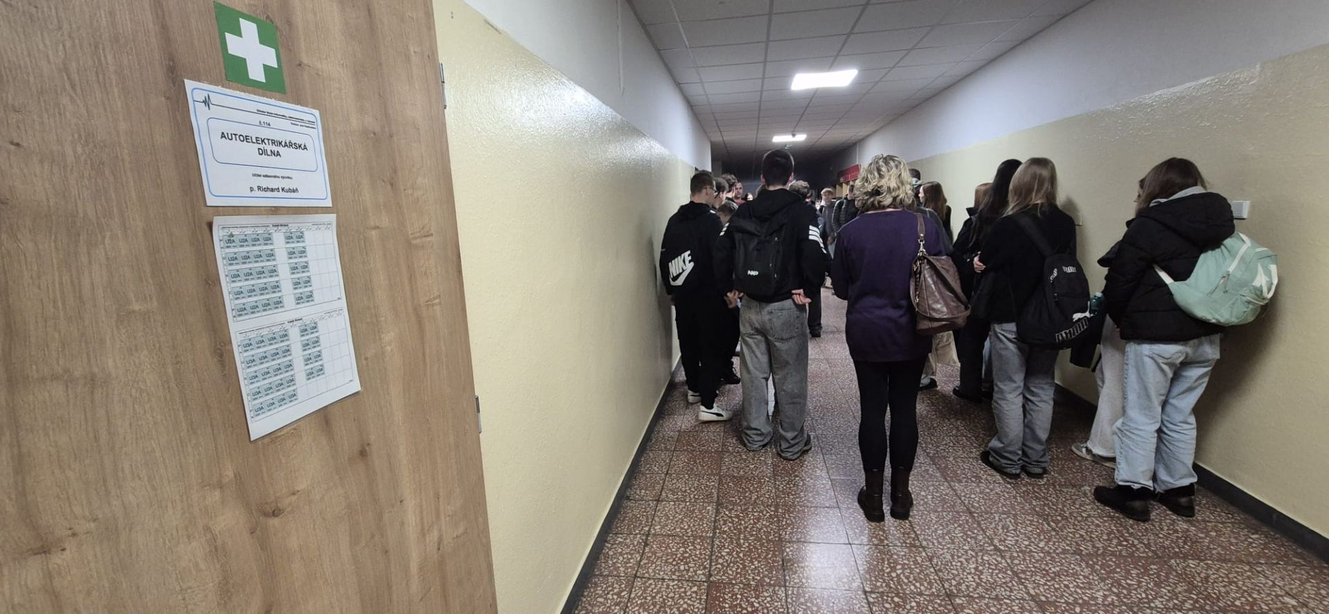 A tak jsme náročné téma odlehčili prohlídkou školy. Zaměřili jsme se na studované obory a jejich specifika – elektrikář slaboproud/silnoproud, autoelektrikář, zámečník, kadeřnice a jiné. V tom budou mít mnozí po dnešní návštěvě naprosto jasno.
