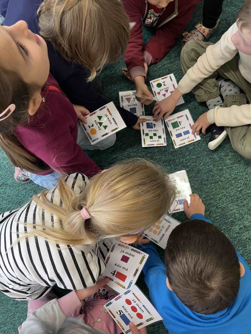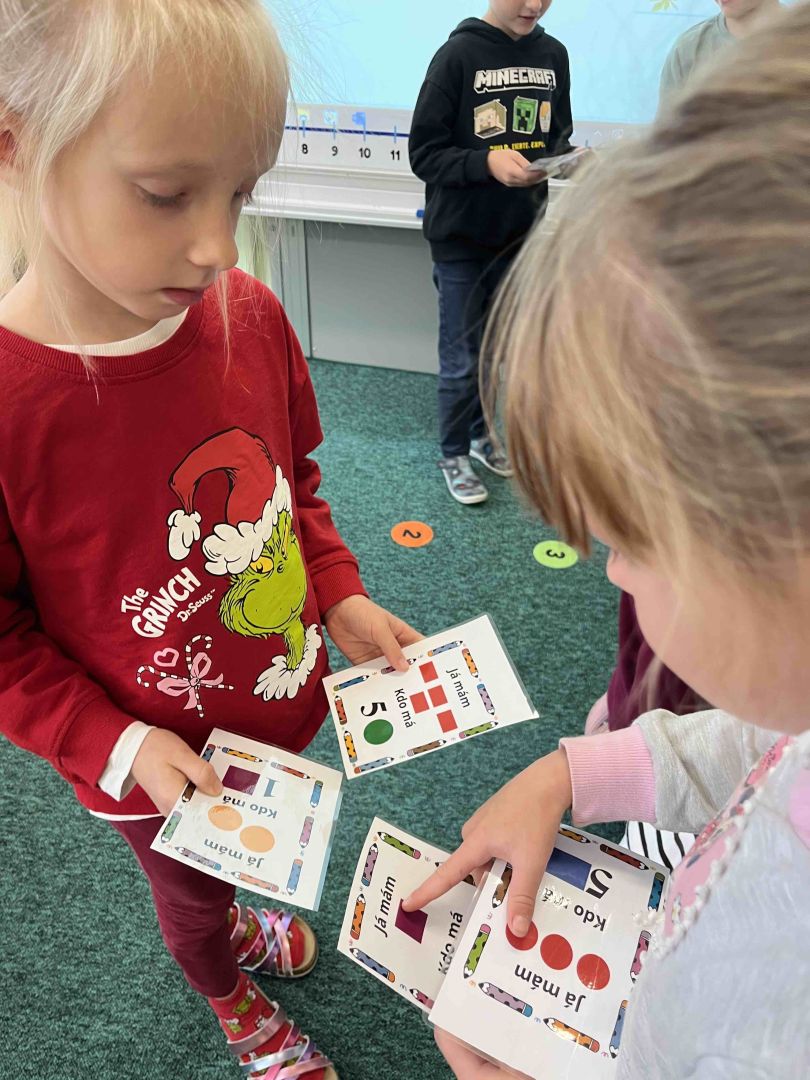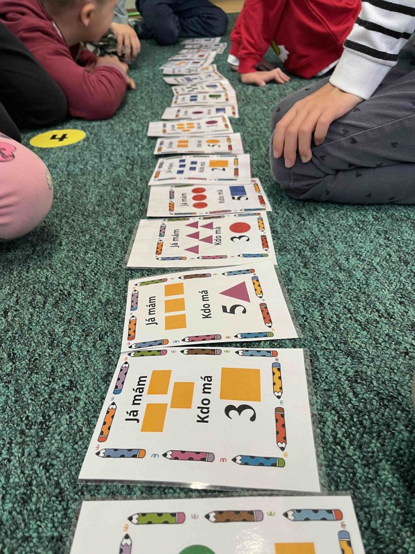 V matematice se seznamují s prvními početními operacemi – sčítáním a odčítáním. Aby to nebyla jen práce v sešitech, procvičujeme počty hravě – pomocí her, běhacích aktivit a dalších zábavných činností, které děti motivují a baví.