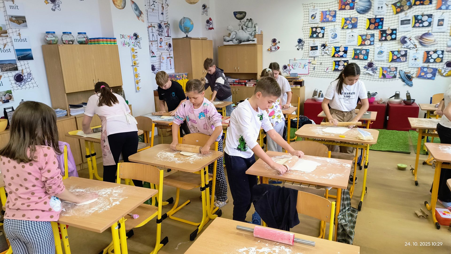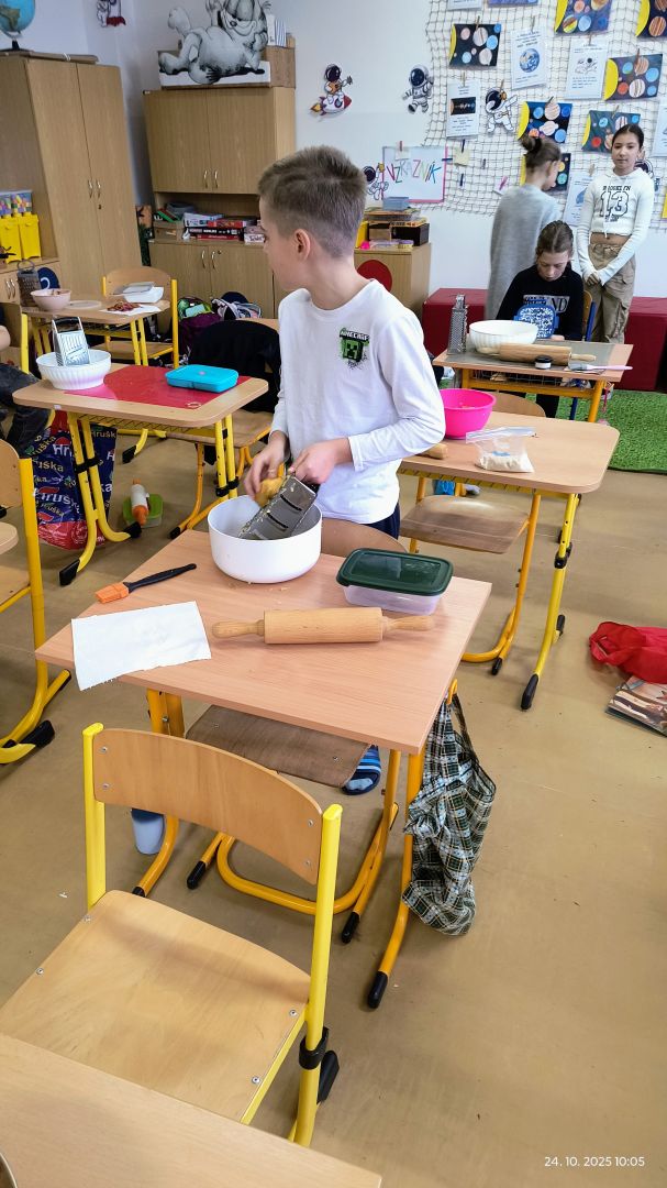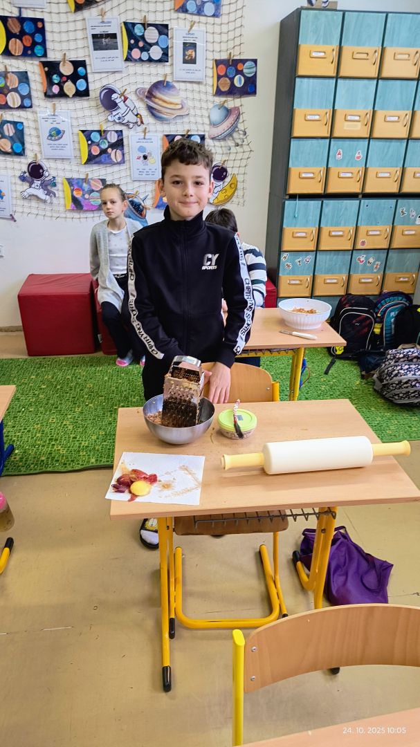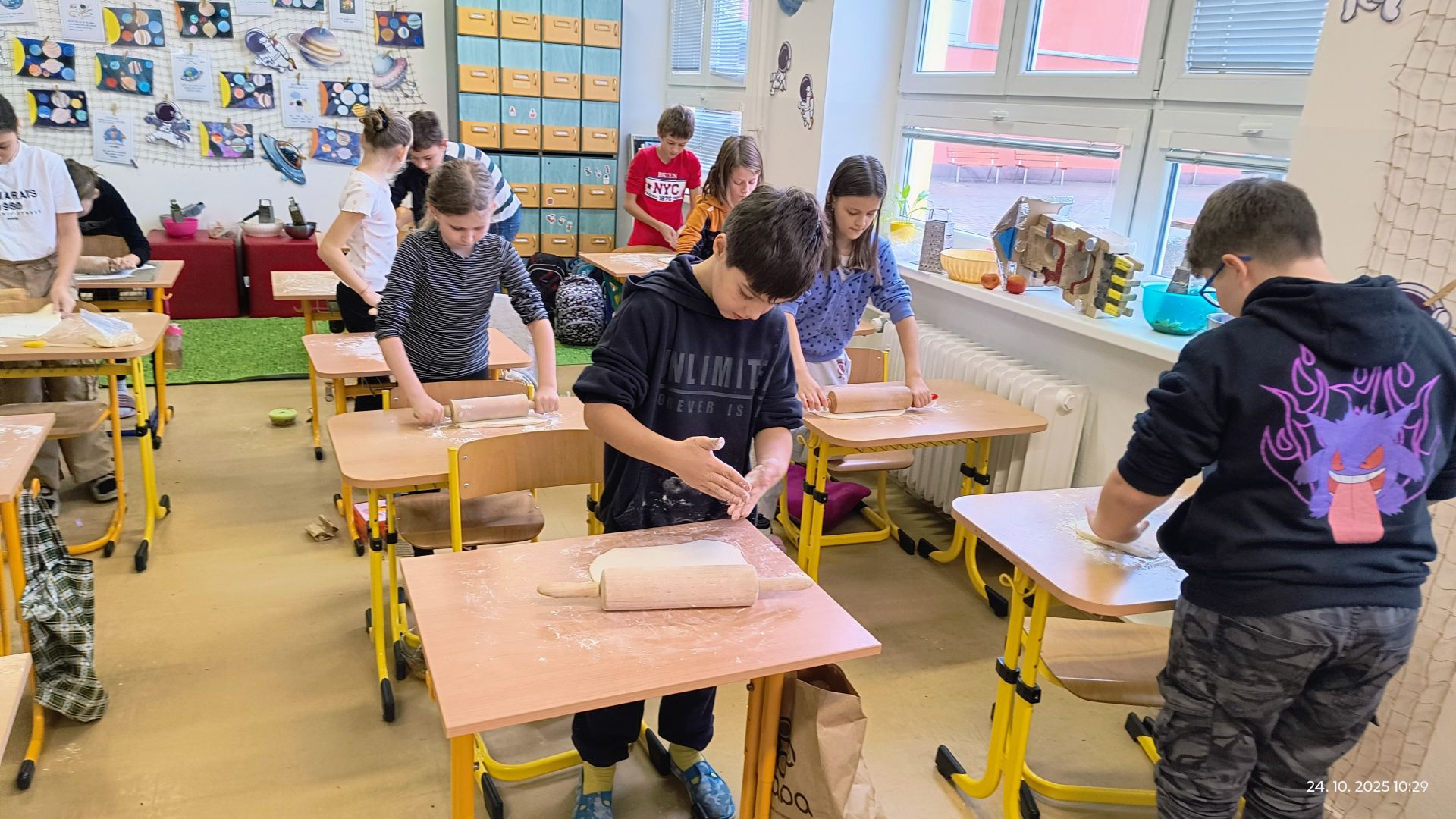 Šustící barevné listí všude kolem, teplé kabáty a svetry si ve skříních vyměnily místo s tričky a tílky. Podzim. Barevný, veselý, větrný, někdy deštivý. Doba, na kterou se všichni sadaři, zahrádkáři i zemědělci těší dost možná z celého roku nejvíc. Už žádné tahání konví vody, nekonečné vytrhávání plevele, konec lovu slimáků a podobných nevítaných hostů. Doba česání ovoce, ukládání zeleniny. Prostě, sklizeň. Po loňskému Farmářském dnu postoupila 4. A takříkajíc o level výš. Veškerou úrodu totiž umíme pojmenovat a rozdělit do beden i bedniček podle druhu. Letos je třeba tu dobrou nádheru také nějak zpracovat. Protože prý nečekaná nadúroda jablek, pustíme se rovnou do té šťavnaté křupavé lahůdky. Nejlepší jsou určitě přímo ze stromu - také jsme několik košíků voňavých červených plodů vyzkoušeli. Ale, co s nimi dál? Sušit, moštovat, uložit na zimu.Hm...co takhle něco dobrého z nich upéct? Schválně, co vás napadne jako první? Samozřejmě - závin, štrúdl. Tak, proč ne? Vyzbrojeni válečky, struhadly, skořicí, cukrem a bojovným duchem, pustili jsme se do práce. Pravda, při válení těsta byl stav tak nějak nerozhodný. U některých jasně vítezilo těsto, které odmítalo mít tvar obdélníka. Nevadí, nevadí, jsme bezva partička, vzájemně si pomůžeme. Zručné a zkušené pekařky vzaly válečky do svých rukou. Nastrouhat jablka, podsypat strouhankou, přidat cukr a voňavou skořici, zamotat..hotovo. Kdepak, kdepak, ještě potřít vajíčkem, propíchat a nedočkavě koukat do trouby na ten svůj kousek. Jakpak se mu v tom teple daří? Povedly se všechny náramně, v každé rodině měli v pátek o večeři postaráno. Máte hodně jablek? Tak těsto, váleček, mouku..ostatně, návod jsme napsali. Dobrou chuť a ať se dílo podaří!