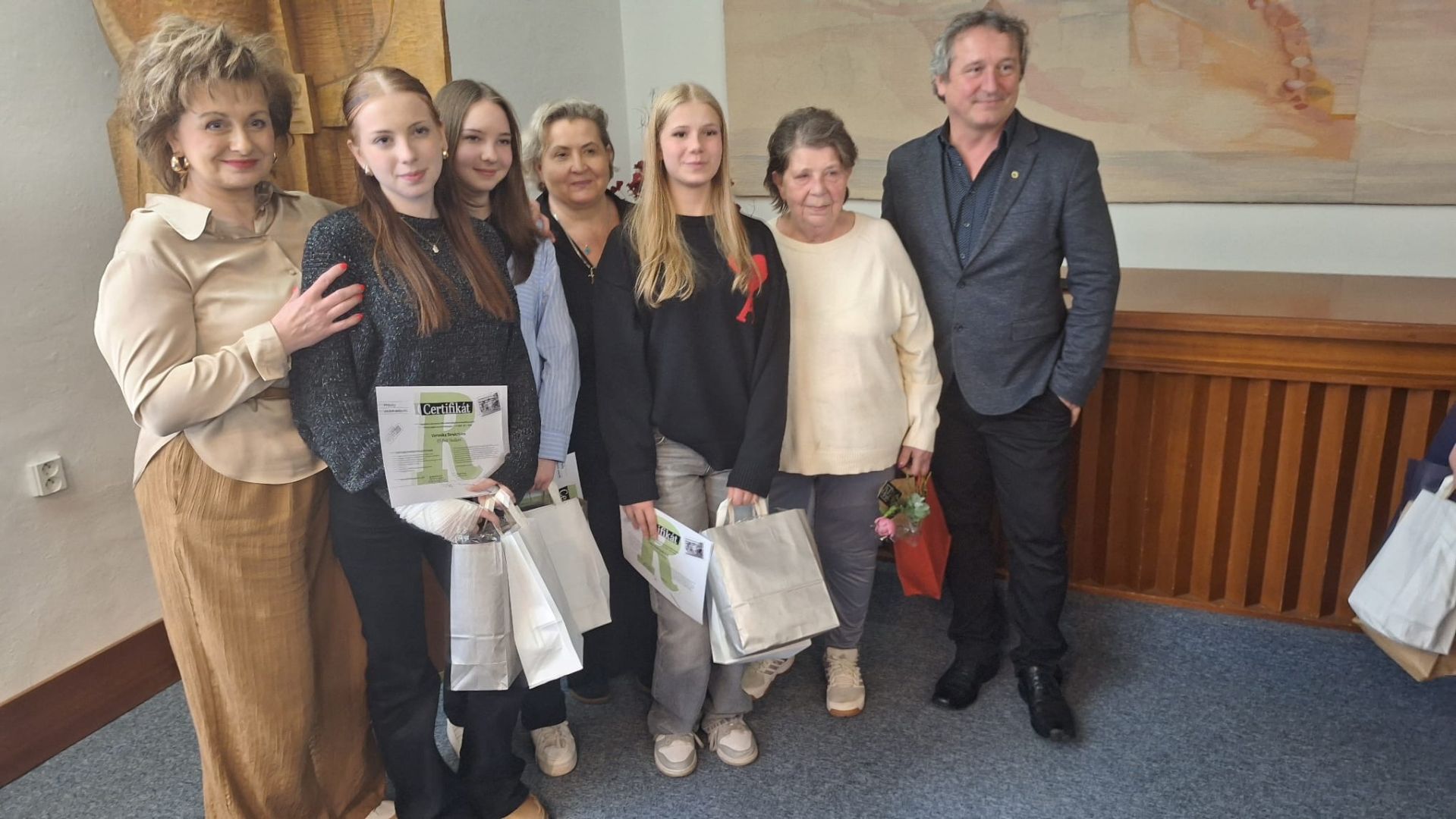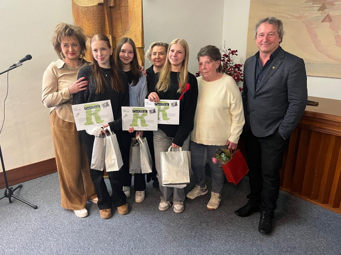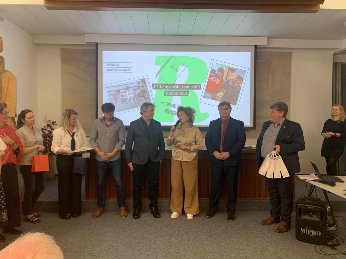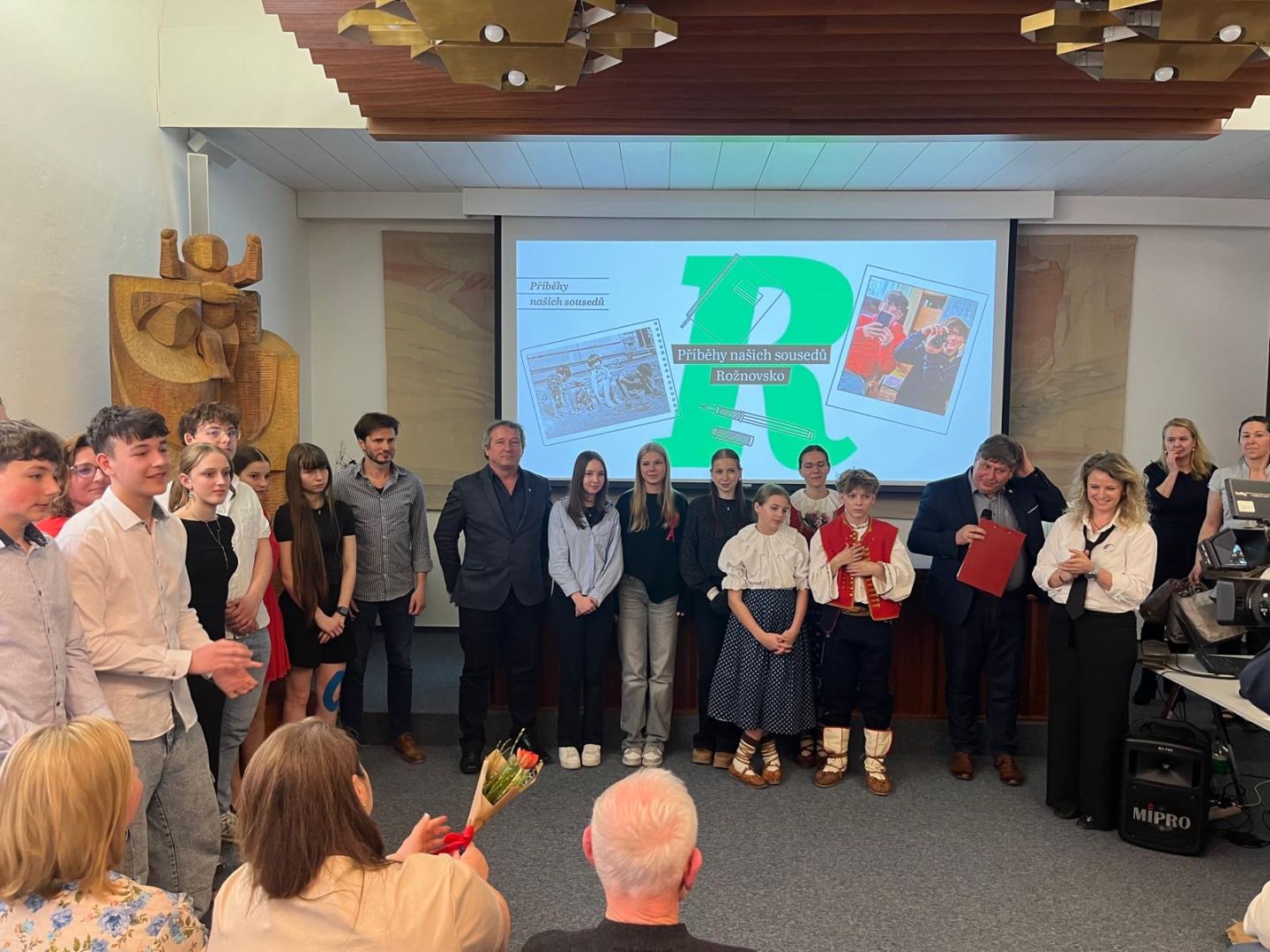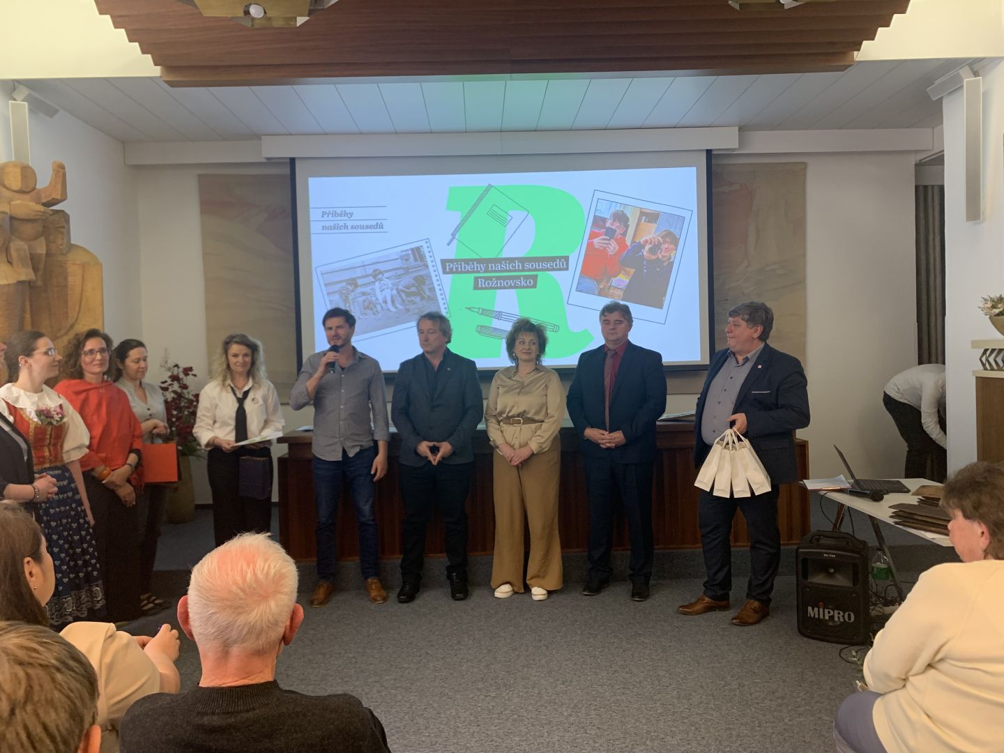 Ve středu 25. března se žákyně z 9. A Veronika Strakošová, Lucie Kolmačková a Kateřina Javorová zúčastnily slavnostní prezentace projektu Příběhy našich sousedů, která se konala od 16 hodin v obřadní síni rožnovské radnice.